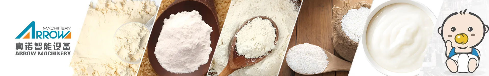 With the improvement of people’s living standards, health care products and nutritional powders have gradually entered thousands of households in the form of gifts. People who have come out of the traditional diet structure start to look for functional foods that are good for health and longevity after they have enough food and clothing. The knowledge of nutrition is also widely used. The Nutrition Powder /Baby Rice Powder process Line improved by Shandong Arrow Company is a set of automatic nutritional powder production line developed by itself on the basis of absorbing foreign technology. The starch in the raw grain changes its properties, which is conducive to the absorption of the human body, and its nutritional value is higher than that of traditional processing techniques. Output:250-450kg/h, 300-600kg/h, 1-1.7t/h, 1.5-3.5t/h, 3-4.5t/h.