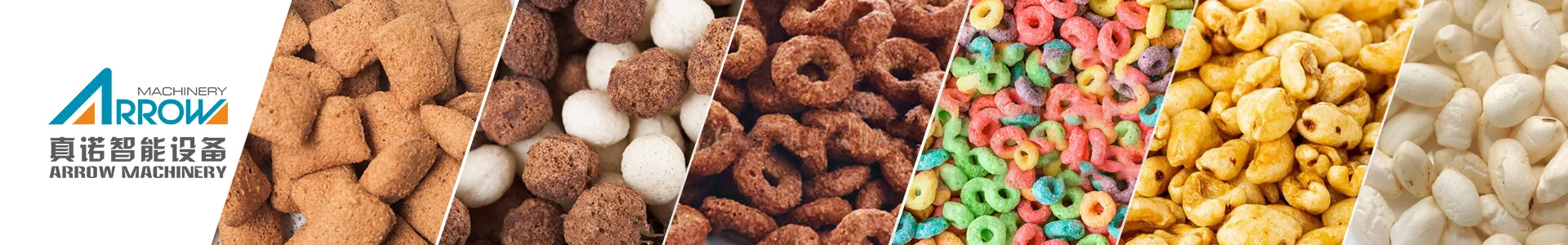 Use corn, wheat, oats grains as materials, after extruded by premium popular by different age consumers.Can be made into cornflakes, whole grain flakes, breakfast cereals, fruit-oat chips, multi-grains high fiber grain chips.