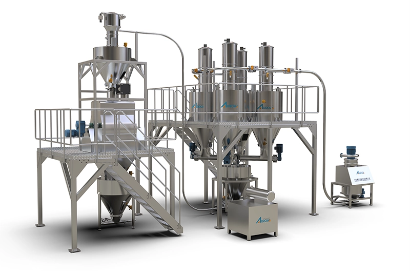 ① Ingredient preparation and mixing ② Extrusion ③ Pre-drying ④ Tableting ⑤ Baking ⑥ Cooling ⑦ Spraying ⑧ Drying and cooling